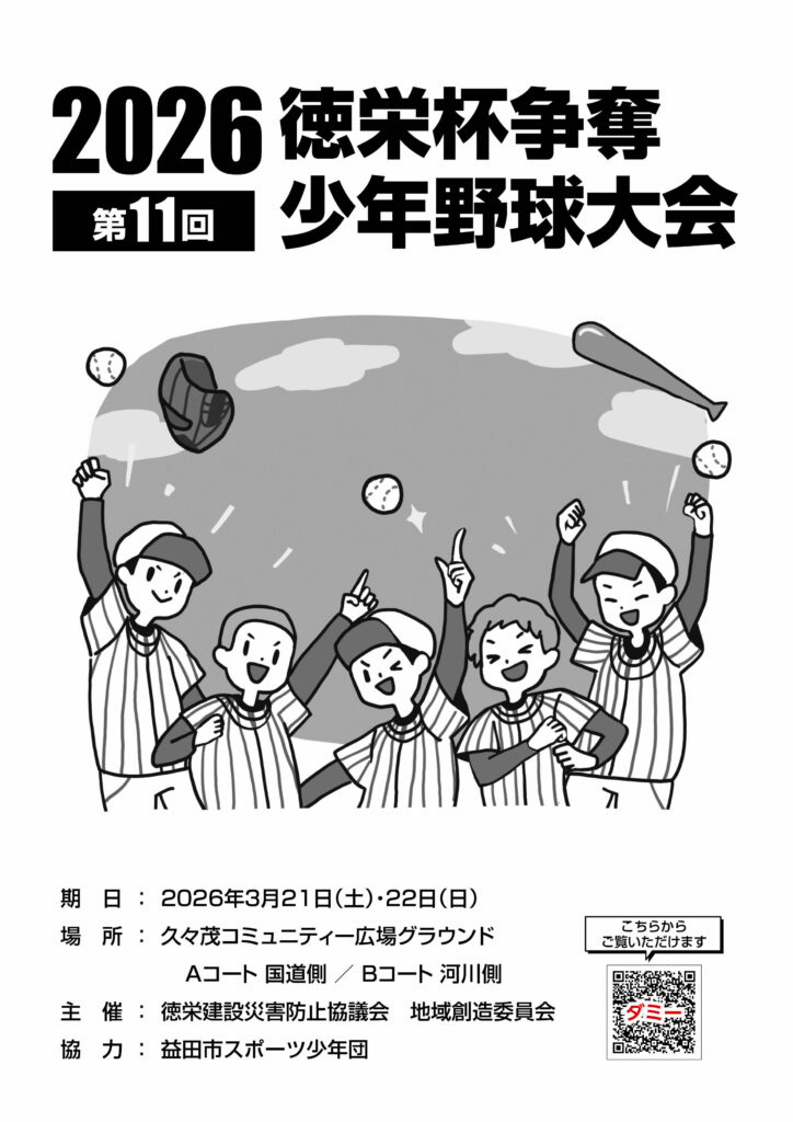 令和8年3月21日(土)22日(日)に、久々茂コミニティー広場にて徳栄杯争奪野球大会を開催します。